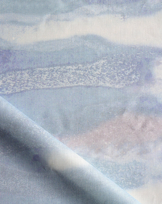 Like the transition from consciousness to dream state, firm strokes of pigment devolve into whispers of color in the expansive and atmospheric mural pattern Delta.