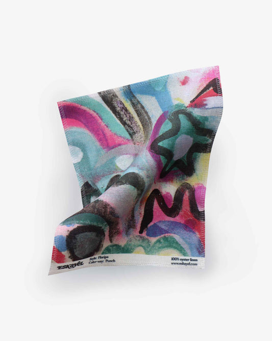 In our second collaboration with Gordon, his original acrylic painting on canvas brings an intoxicating mix of color and light to fantastic iconography that spans folktales, the jungle, beach life, and surf culture. As a vibrant sensory explosion that hums with life, the rich, rhythmic pattern makes an ideal choice for adding art, motion, and fun to larger walls.