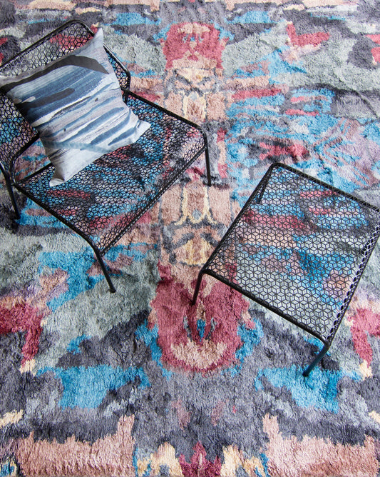 “I wanted to convey the feeling of sitting upon cushions and rugs on the rooftop of a well-appointed riad at dusk after a long hot day when the breeze finally cools you off and the pink glow of the city and the sunset are enjoyed with a cocktail.”
