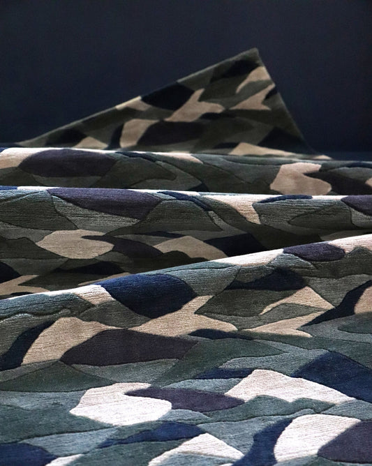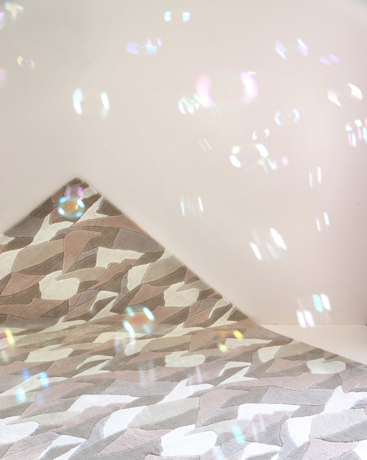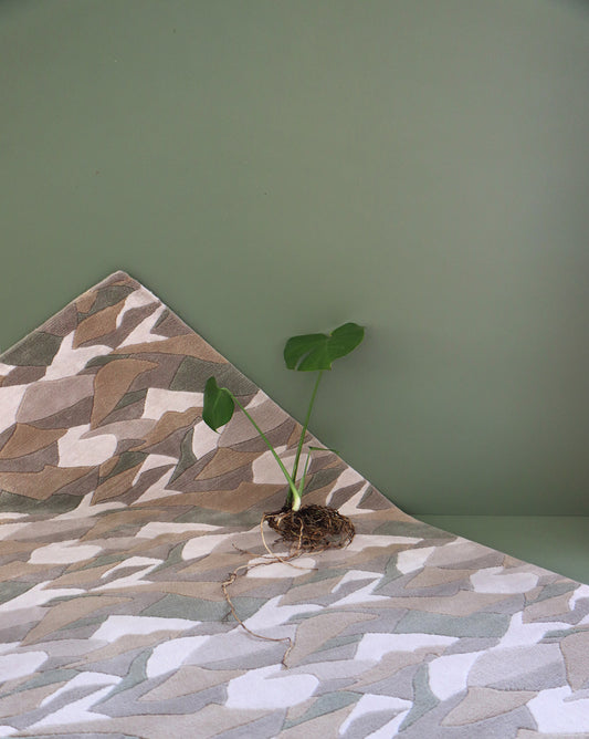 When designing the pattern as a rug, Shanan seized the chance to reinterpret the vista again, introducing depth through textural contrast. Made from merino wool, the sumptuous rug features hand-cut bevels in the pile that delineate the shapes.