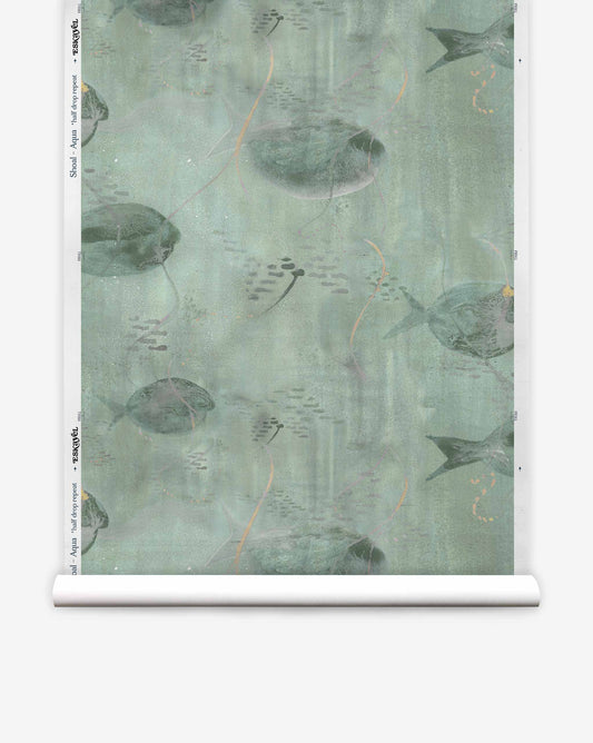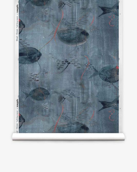 Featuring a school of fish hovering in a watery habitat, Shoal is a new pattern that drips with ambiance. Shanan Campanaro painted the design in watercolor after an afternoon spent snorkeling in the Maldives.