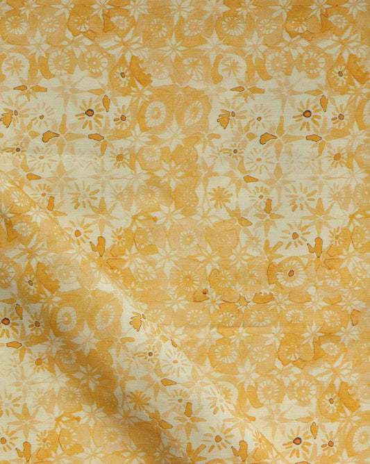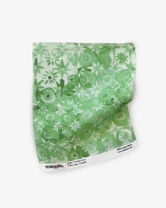 In a pattern inspired by handmade textile heirlooms, Crochet Lace is a cheerful micro-print featuring a constellation of flowers superimposed on a grid of squares.