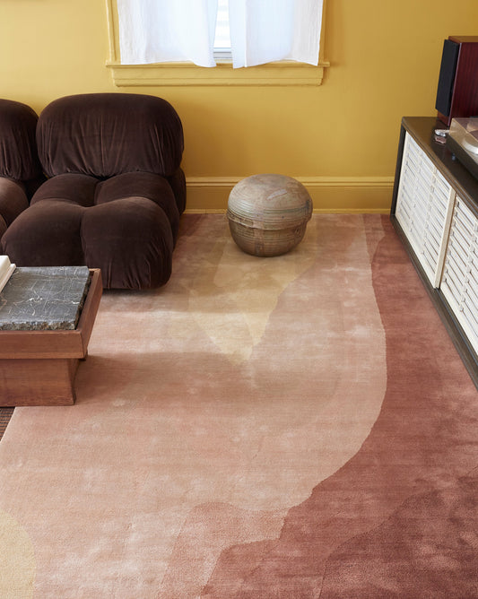 Tonal progressions of color can be found in every detail of the natural world: sunrise over the ocean, the new growth of a tree, a landscape at dusk. Through a collection of hand-knotted rugs, Progressions showcases these natural gradients and celebrates the succession of shades through the spectrum.