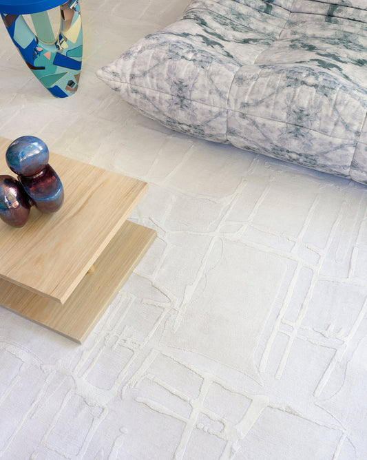 Quotidiana is available as wallpaper, fabric, and rugs.