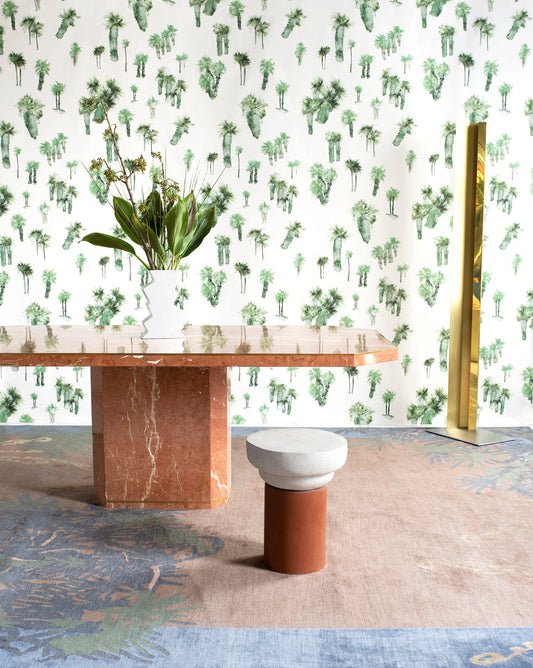 Organic and architectural motifs borrowed from the sun-drenched, palm-lined cities of the region provide captivating themes for this collection based on Shanan’s original watercolors. Palettes and patterns throughout the range of rugs, textiles, and wallpapers were inspired by Puglia’s sunbaked limestone facades, olive groves, crystalline sea, and the opulent, timeworn interiors of its classical palazzos.