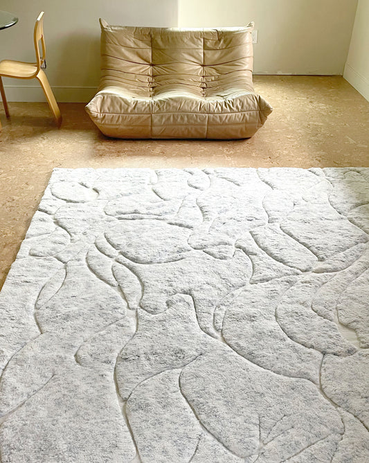 Derived from an expressive watercolor painting, the Hibiscus Lily rug plays with texture in colorways inspired by the clouds.