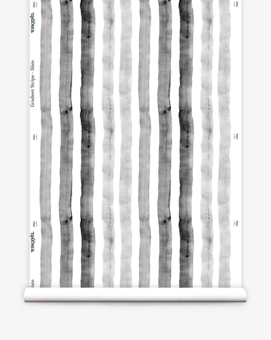 The Stripes Collection is available as classic wallpaper and fabric in various colorways in four patterns – Bamboo Stripe, Bold Stripe, Gradient Stripe, and Drippy Stripe. Both Drippy Stripe and Bold Stripe are also available as rugs.