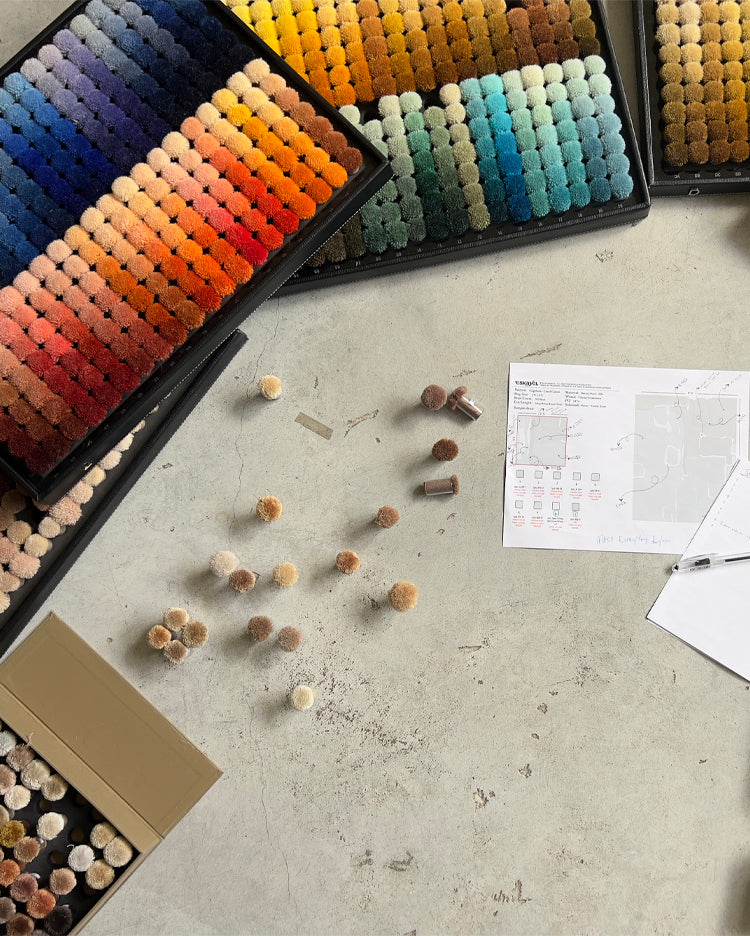 All of our bespoke rug designs are based on original paintings and made to order in custom sizes and colorways from premium silks and wools. Hand-knotted by skilled artisans in Nepal, they feature Tibetan crossweave, high and low pile, flatweave, semi-shag, shaggy weave, and Moroccan weave.