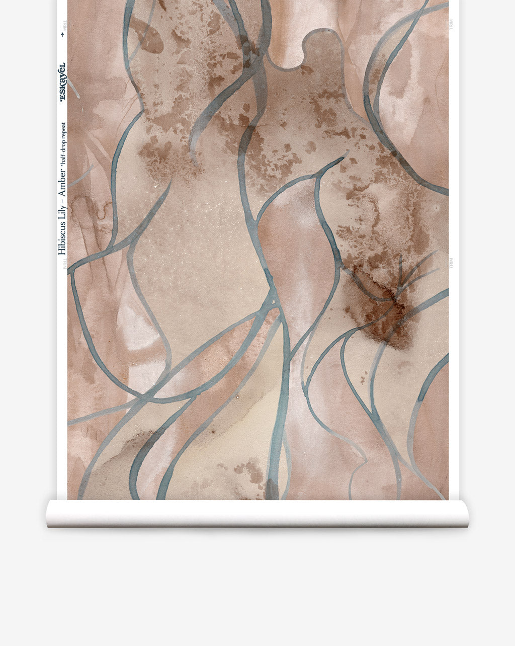 Using expressive strokes of watercolor, Hibiscus Lily from the Forma collection plays with lines that become shapes that evoke particular moods. This wallpaper design is a nod to exotic overlapping petals slowly shifting in place as they bloom, producing a sense of calm. Beige, grey, and brown are the shades of the Amber colorway.